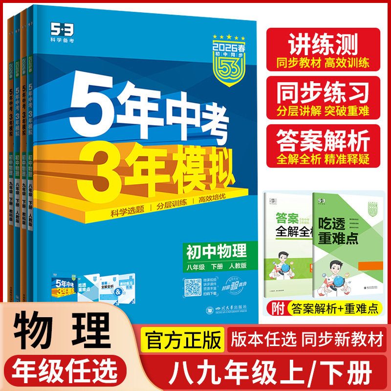 2026春五年中考三年模拟八九年级物理人教版教科版苏科版沪科版5年中考3年模拟物理初二初三练习册五三初中89年级同步53全练全解