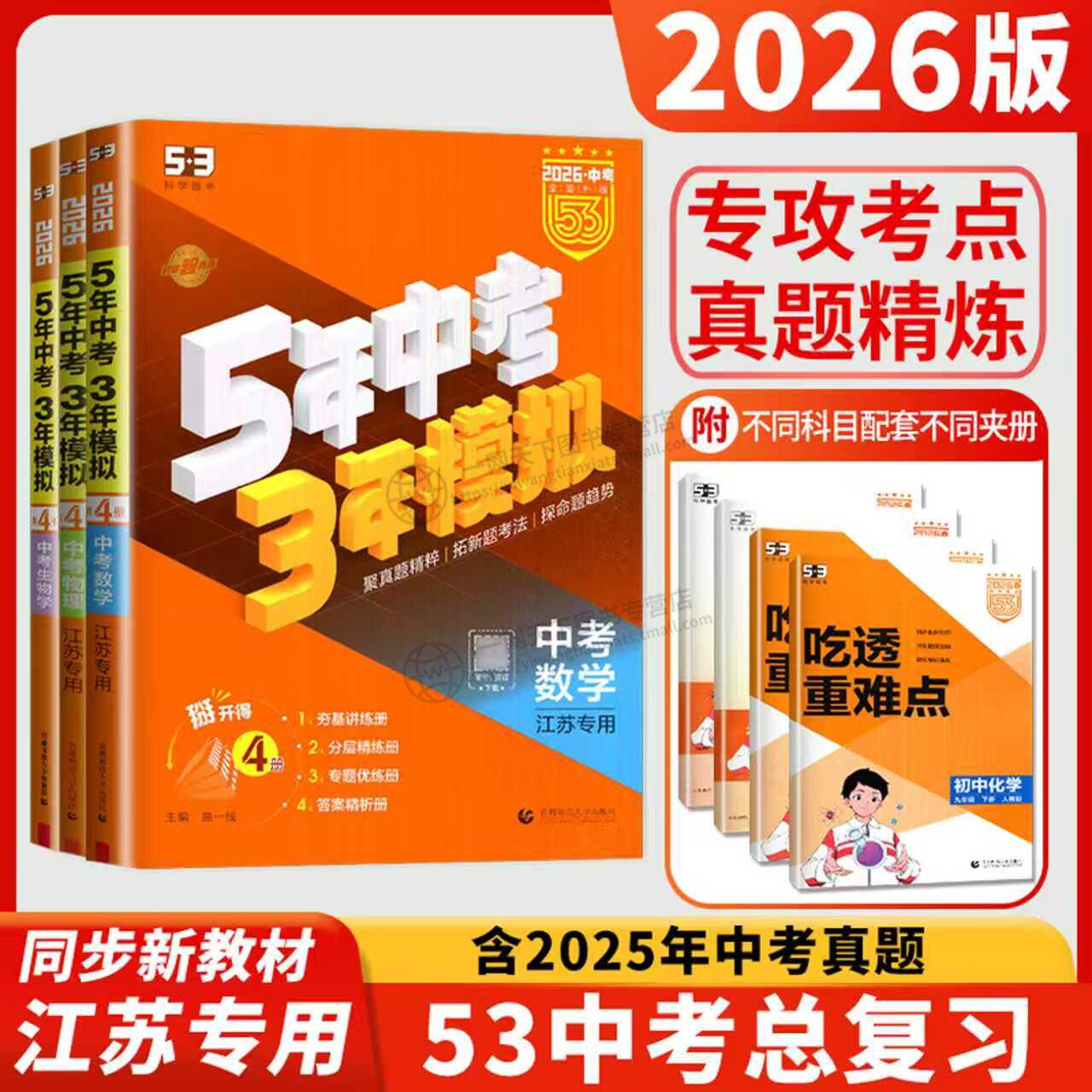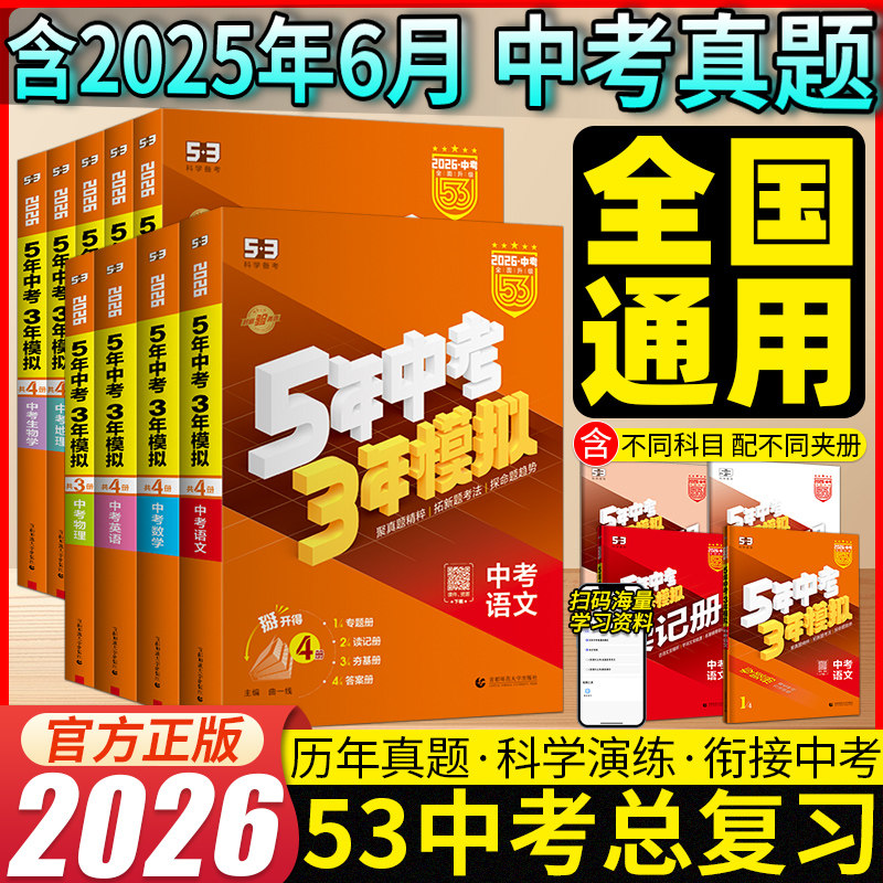 2026版53中考五年中考三年模拟英语数学物理总复习江苏专用初中会考5年中考3年模拟语文化学政治历史地理生物九年级试卷初三真题