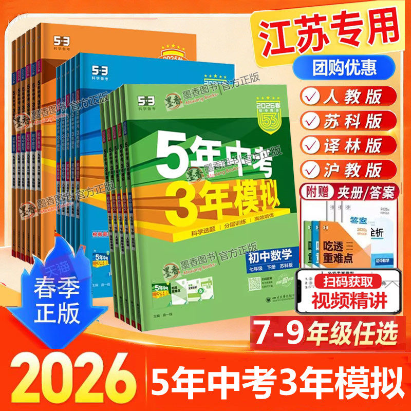 2026版53五年中考三年模拟总复习江苏专用数学语文英语物理化学政治地理历史苏教版苏科译林版五三5年中考3年模拟九年级初三辅导书