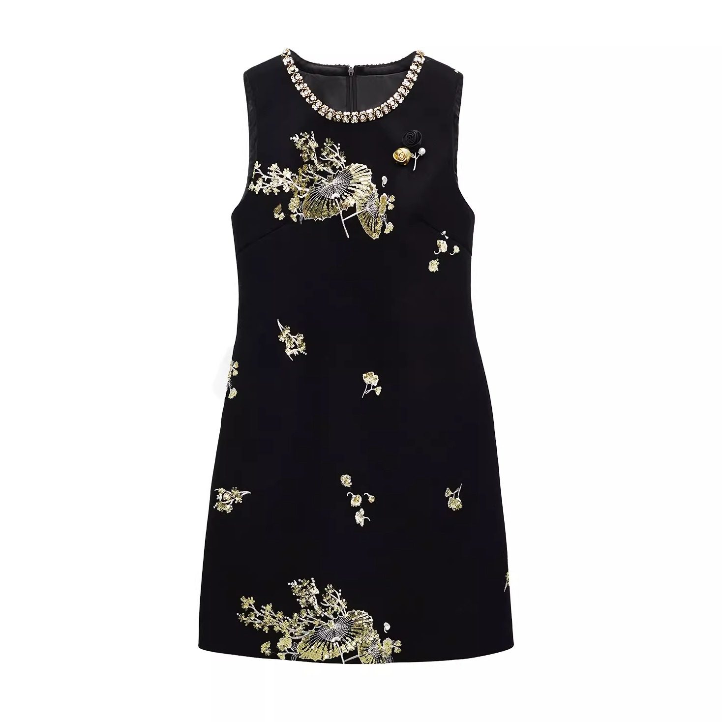 2025秋冬新款黑色重工钉珠刺绣无袖连衣裙女轻奢优雅风OLQW-2217