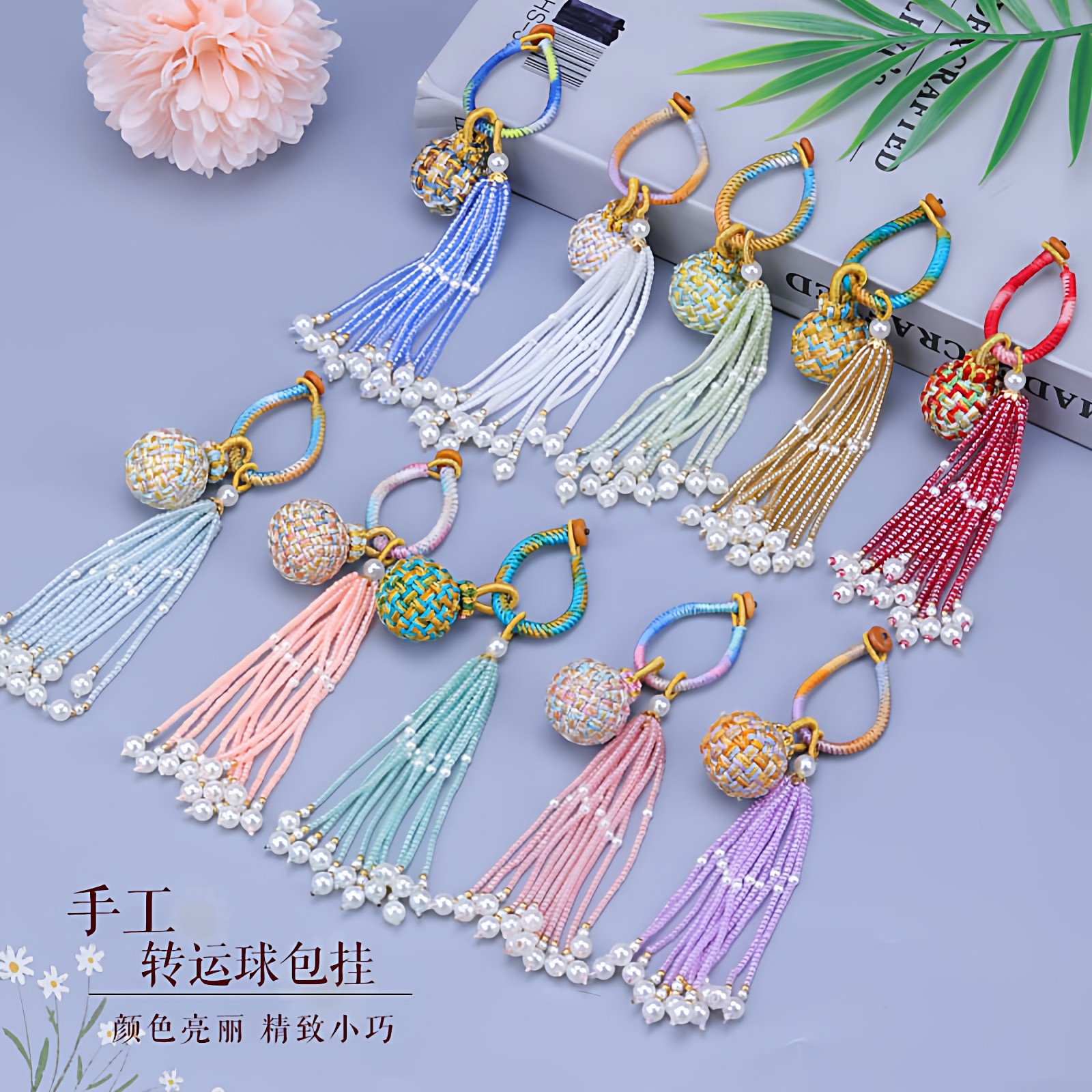 手工编织环圈水晶吊坠钥匙扣流苏链条挂饰创意包包装饰挂件小饰品