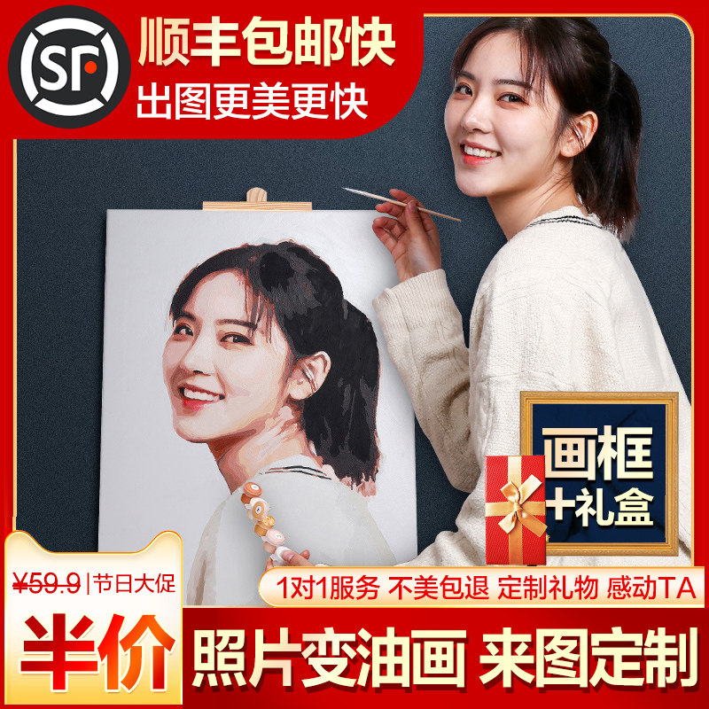 diy数字油画定制照片油彩画涂色填充人物自画像真人丙烯画生日