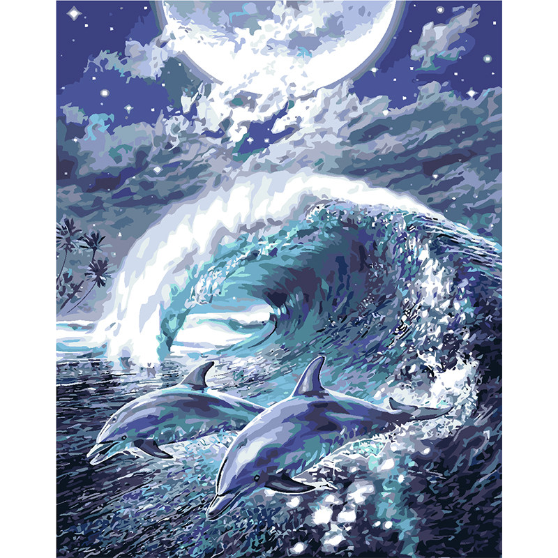 diy数字油画 人物客厅风景抽象定制手工填色减压涂鸦装饰画 海豚