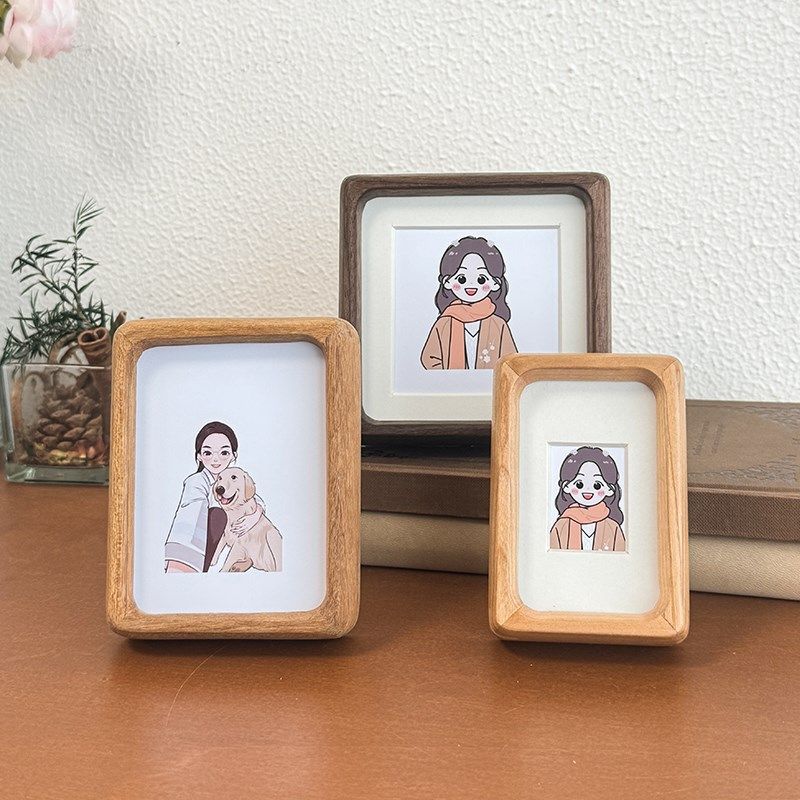 迷你拍立得实木桌面榫卯小相框摆台正方形三寸5 寸diy打印照片框