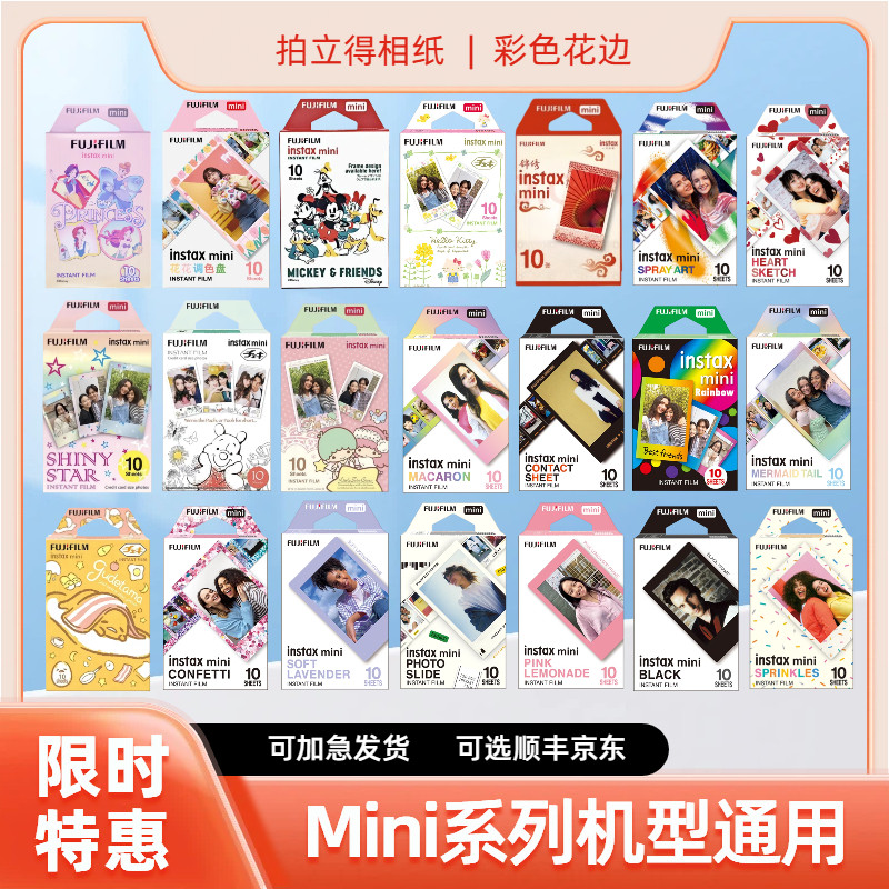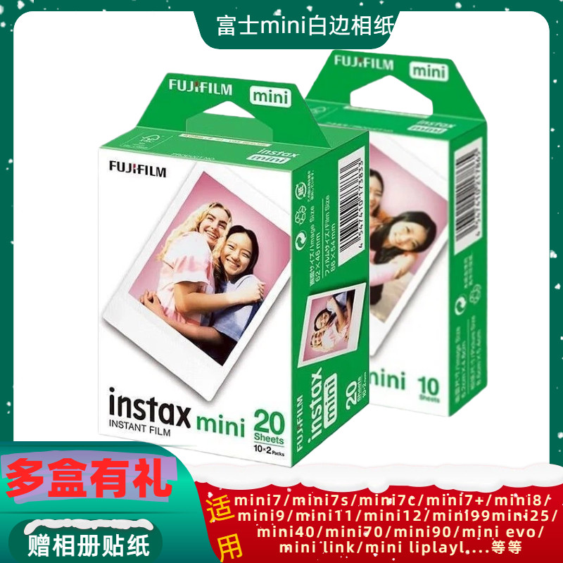 富士instax立拍立得迷你相纸一次成像通用胶卷相片拍立得相机白边卡通mini11/12/7/8/9/90/liplay相纸配件盒