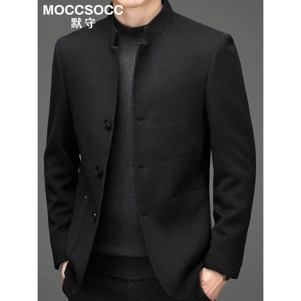 默守秋冬中山装男羊毛呢子大衣中年中华立领毛呢休闲修身商务上衣