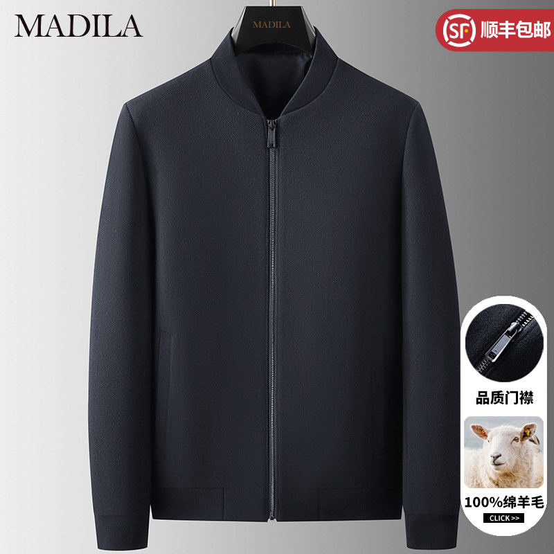 高档纯羊毛夹克男秋冬季新款商务休闲毛呢大衣中年棒球领上衣外套