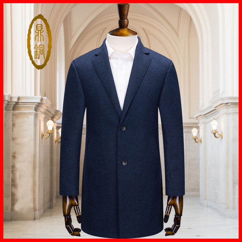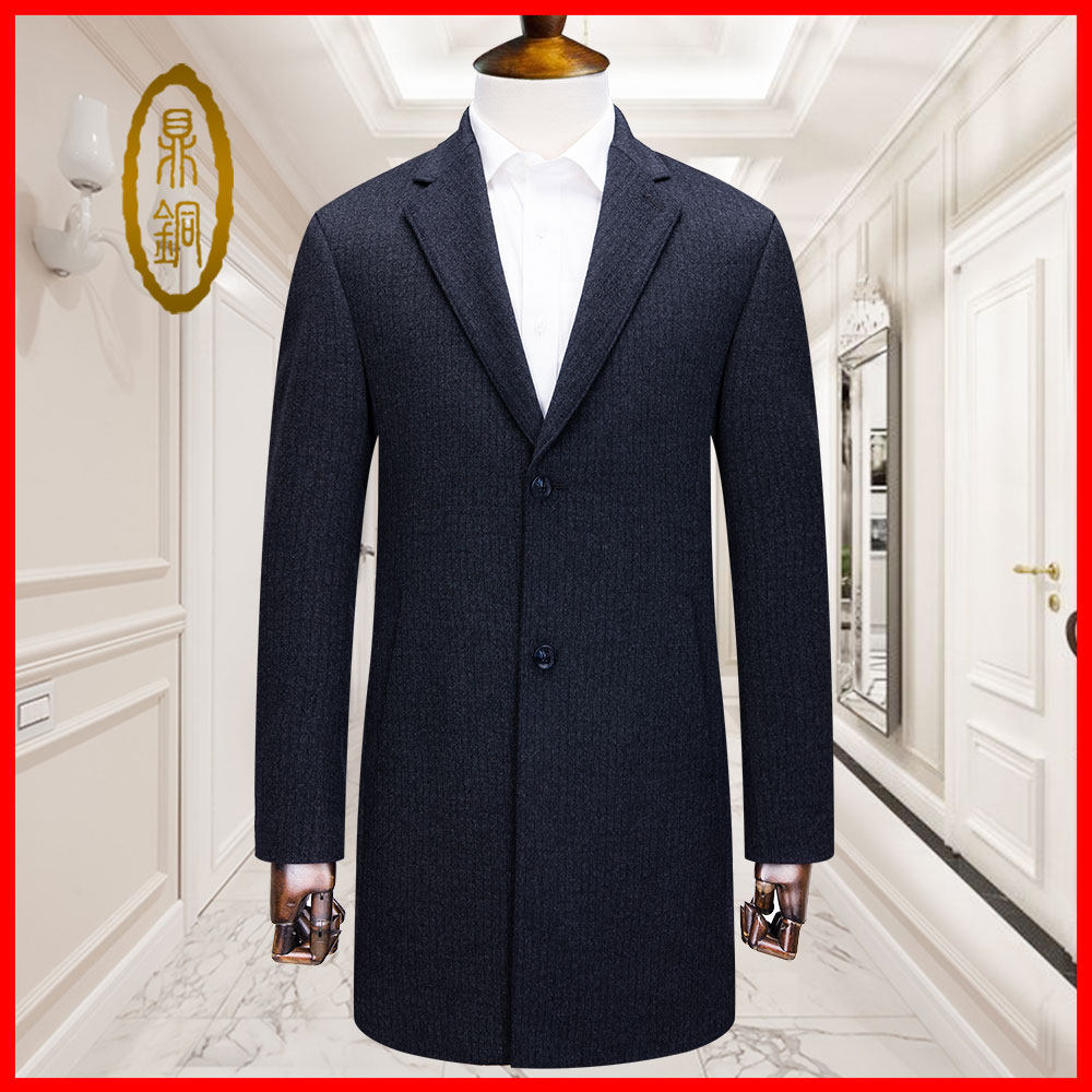 鼎铜羊毛大衣男士西装领中长款中年商务高端加厚呢子外套毛呢秋冬