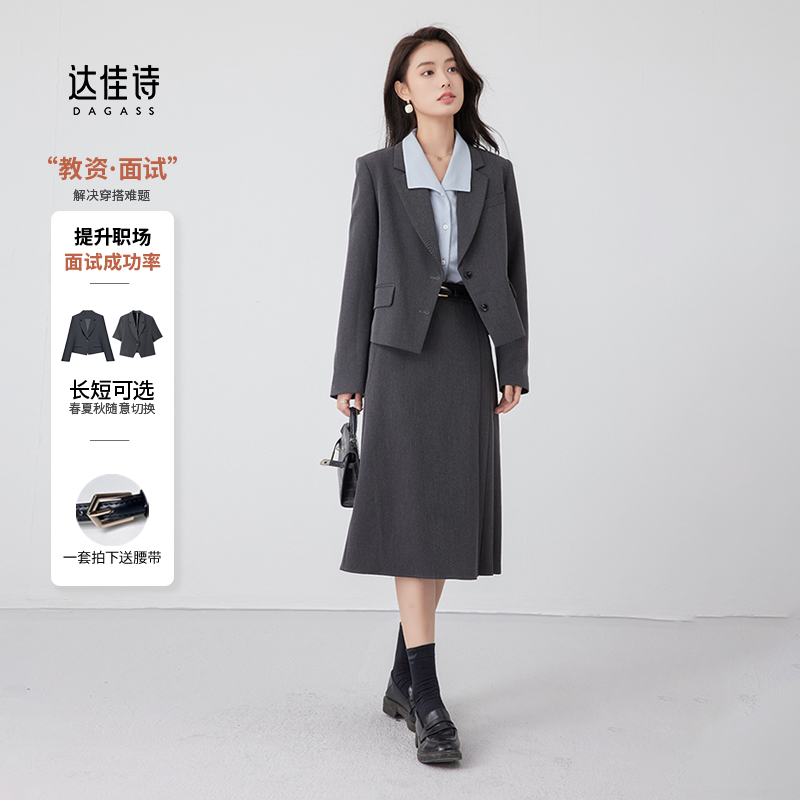 达佳诗灰色面试西装套装女职业正装小个子短款职场通勤西服外套女