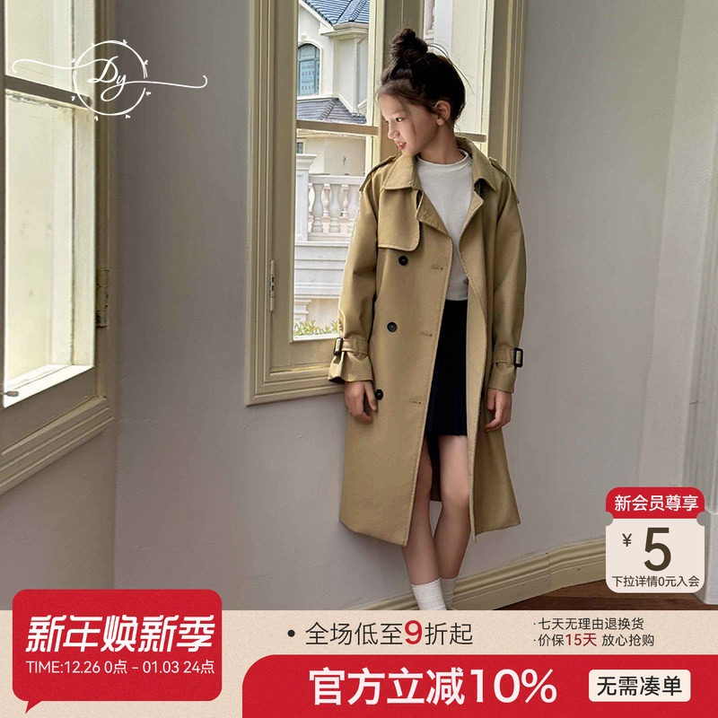 女童英伦风衣外套春秋新款卡其色双排扣中长款气质修身显瘦老钱风
