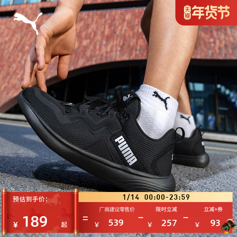 【自营】PUMA彪马跑步鞋男女鞋缓震透气训练鞋情侣黑色网面运动鞋