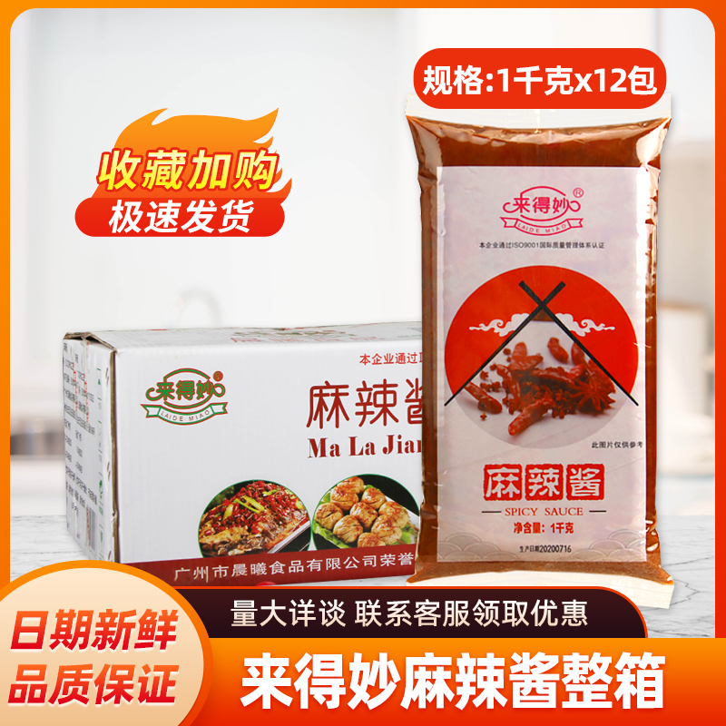 整箱来得妙麻辣酱1kg 商用手抓饼酱料辣椒酱袋装关东煮香辣味家用