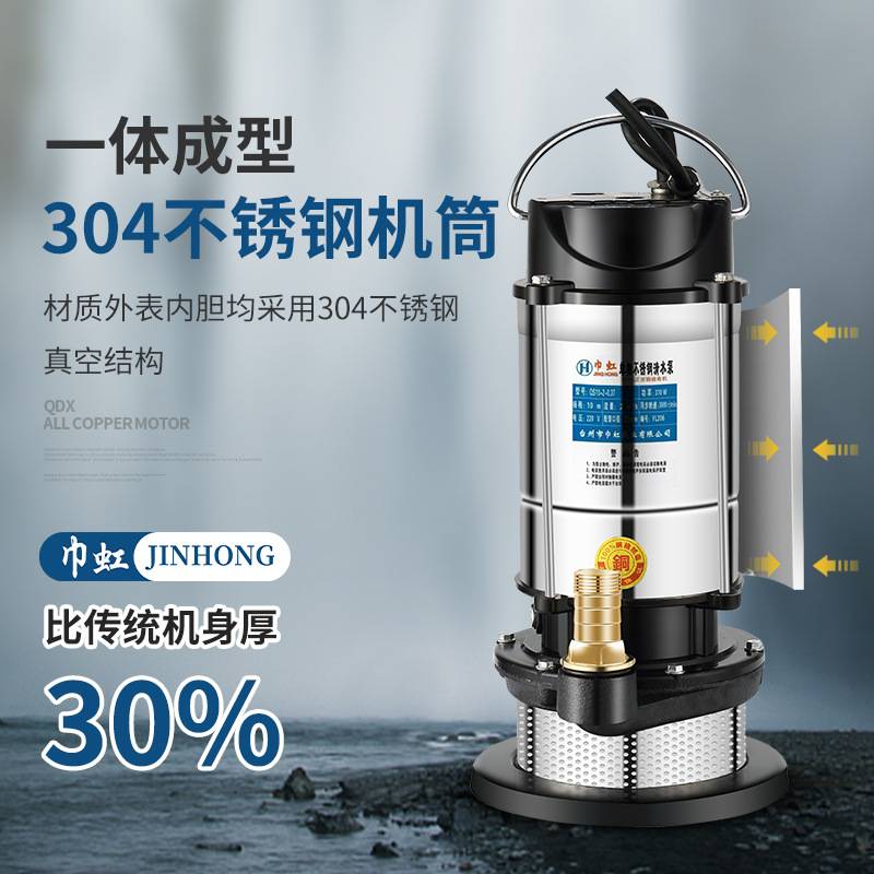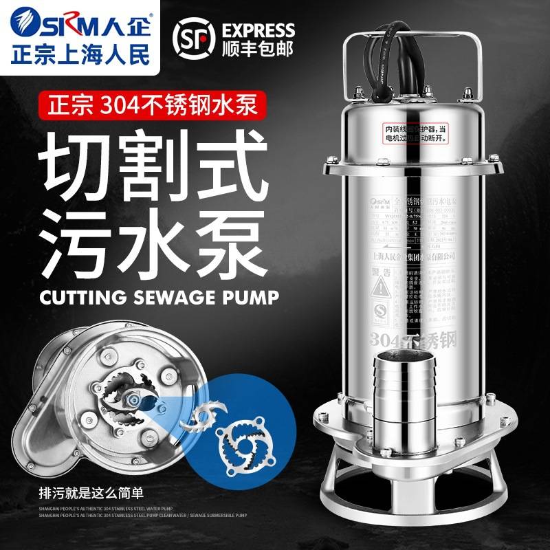 上海人民304全不锈钢切割无堵塞污水泵耐腐蚀化工泵潜水泵220V