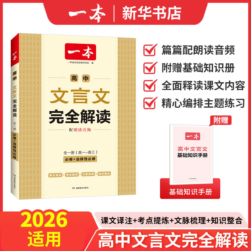 2025适用 一本高中文言文完全解读 人教版配套统编教材必修+选择性必修全一册 高中通用高一二三文言文译注赏析翻译 新华书店正版