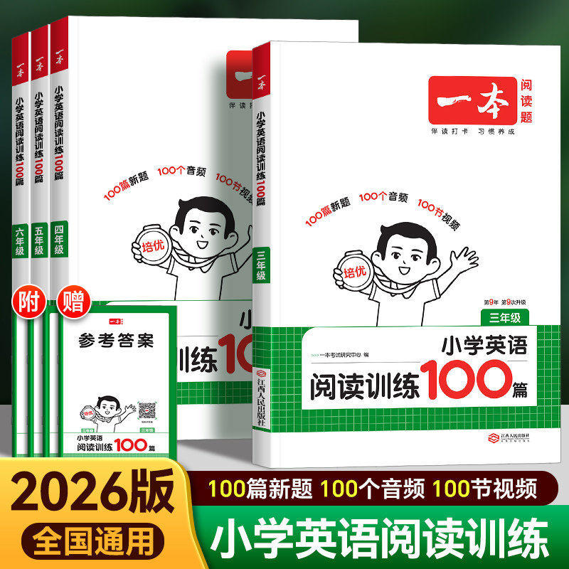 2026一本阅读理解专项训练书100篇一二年级三四五六年级上册下册语文课外真题80英语听力小学生课外阅读理解强化同步训练每日一练
