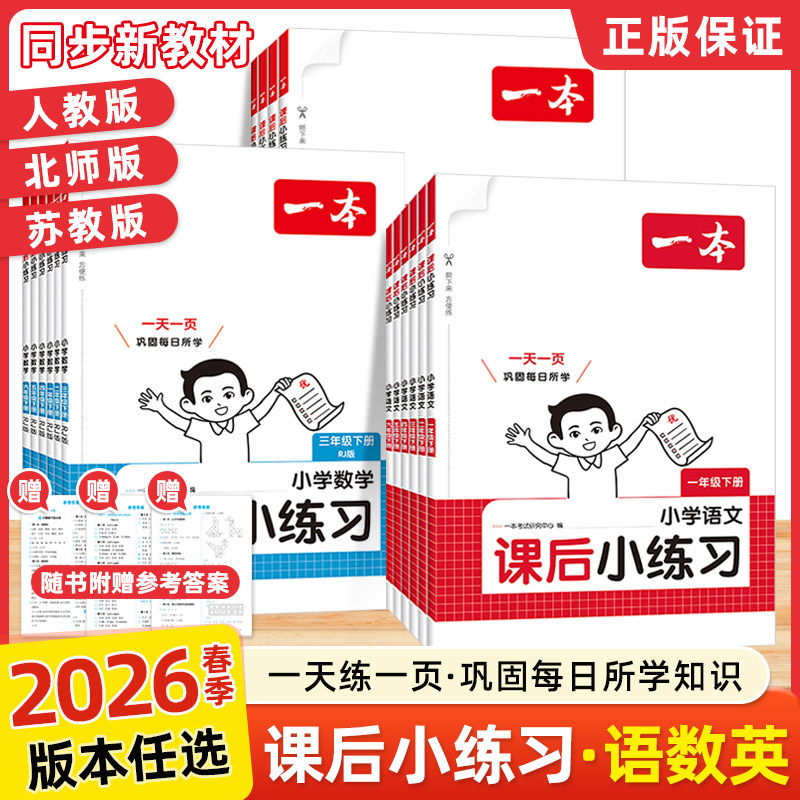 2026一本小学语文数学英语课后小练习一二三四五六年级上下册语文数学同步天天训练人教北师版123456小学课本一课一练同步练习作业