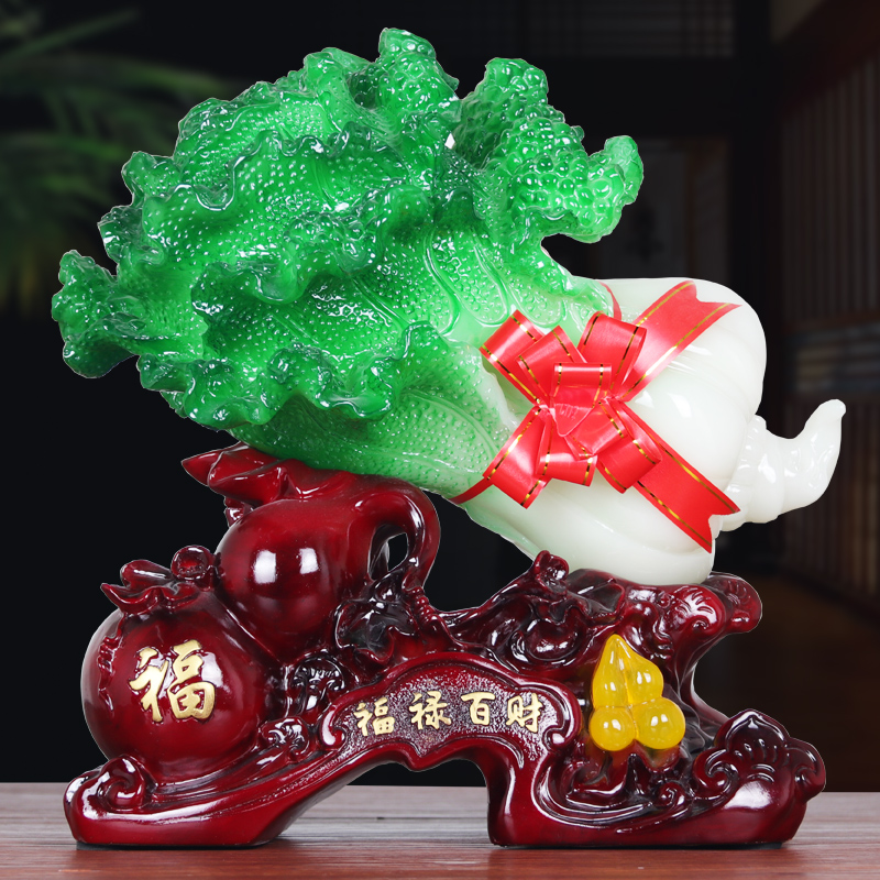 大号玉白菜摆件招财进宝家居装饰品酒柜玄关客厅摆设新店开业礼品