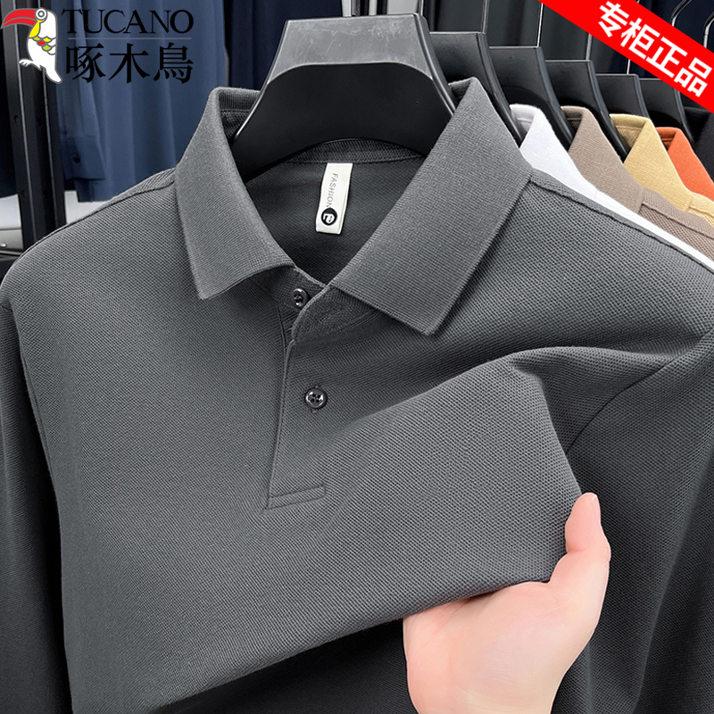 啄木鸟100%纯棉新款Polo衫男士秋冬季长袖T恤中年休闲翻领上衣潮