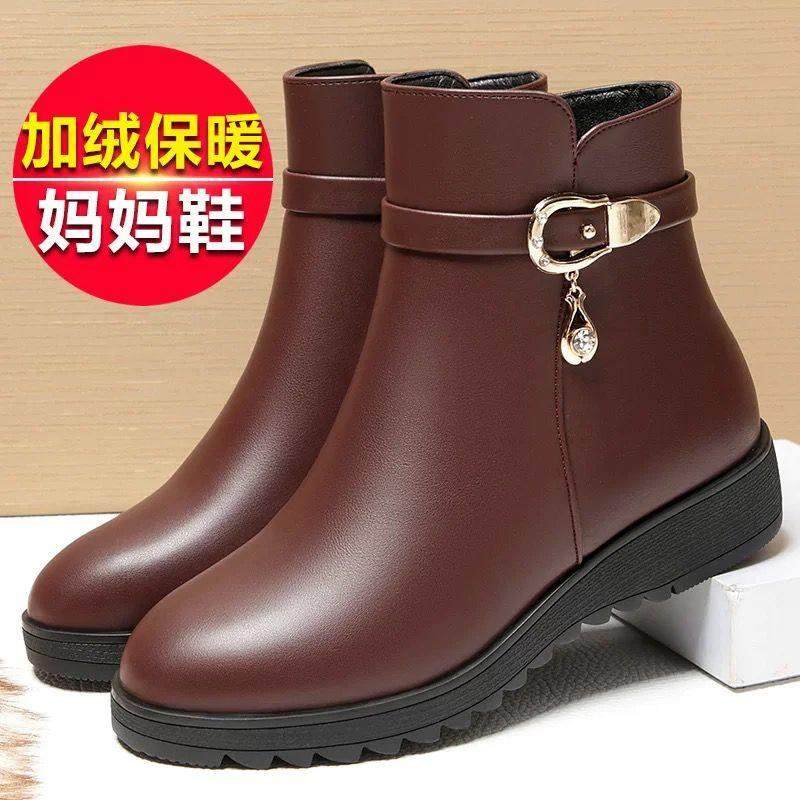- 加绒短靴女靴 真皮