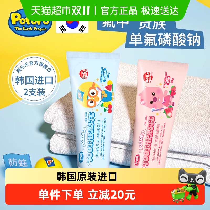 包邮进口啵乐乐儿童牙膏含氟3-12岁宝宝防蛀换牙木糖醇韩国pororo