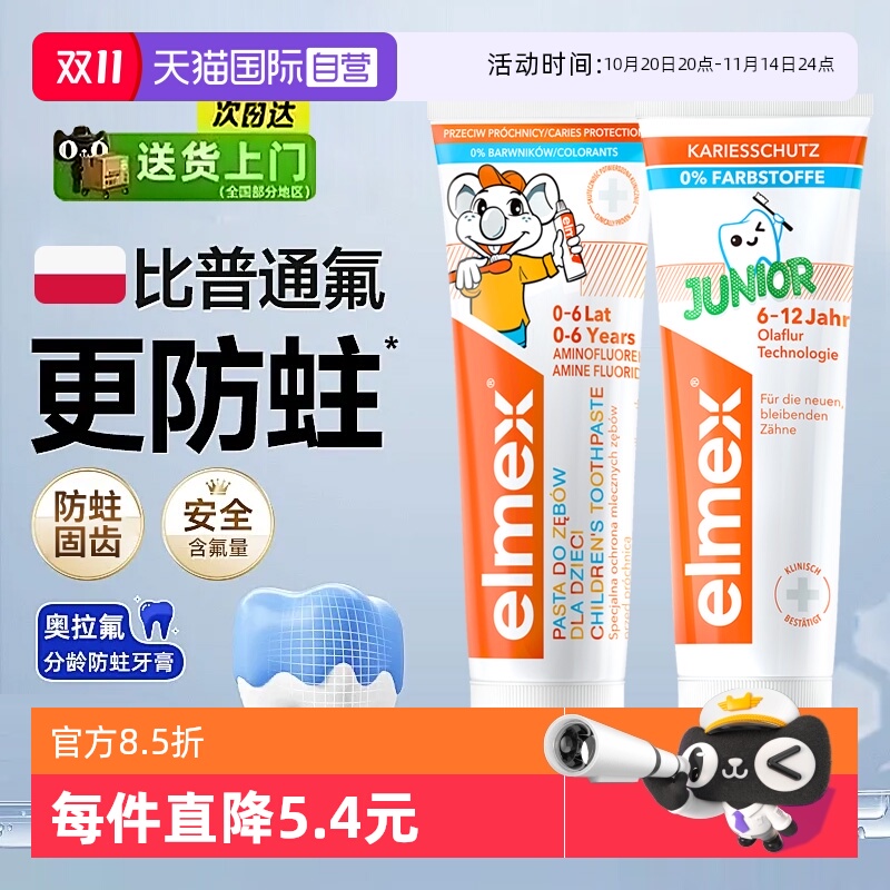 详情跳转】elmex艾美适0-6岁儿童牙膏进口含氟宝宝防蛀牙防龋齿