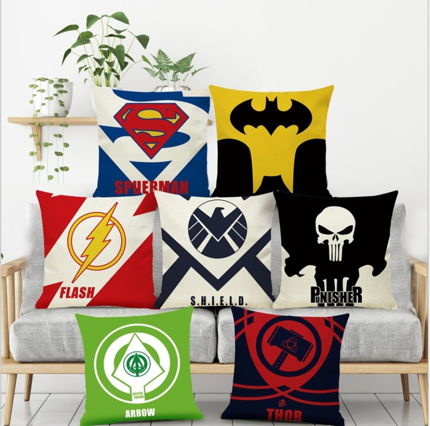 漫威英雄标志亚麻抱枕 复仇者联盟4美国队长雷神靠枕靠垫方形腰垫