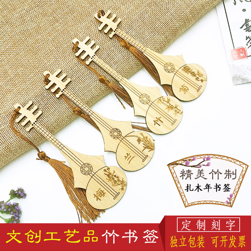 古典竹子书签扎木年乐器造型梅兰竹菊激光雕刻西藏少数民族工艺品