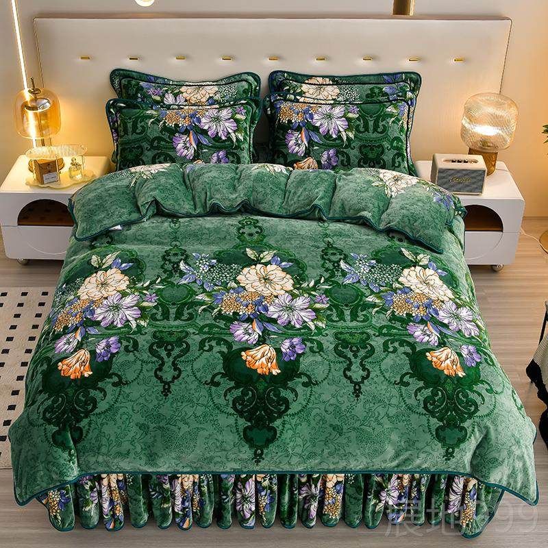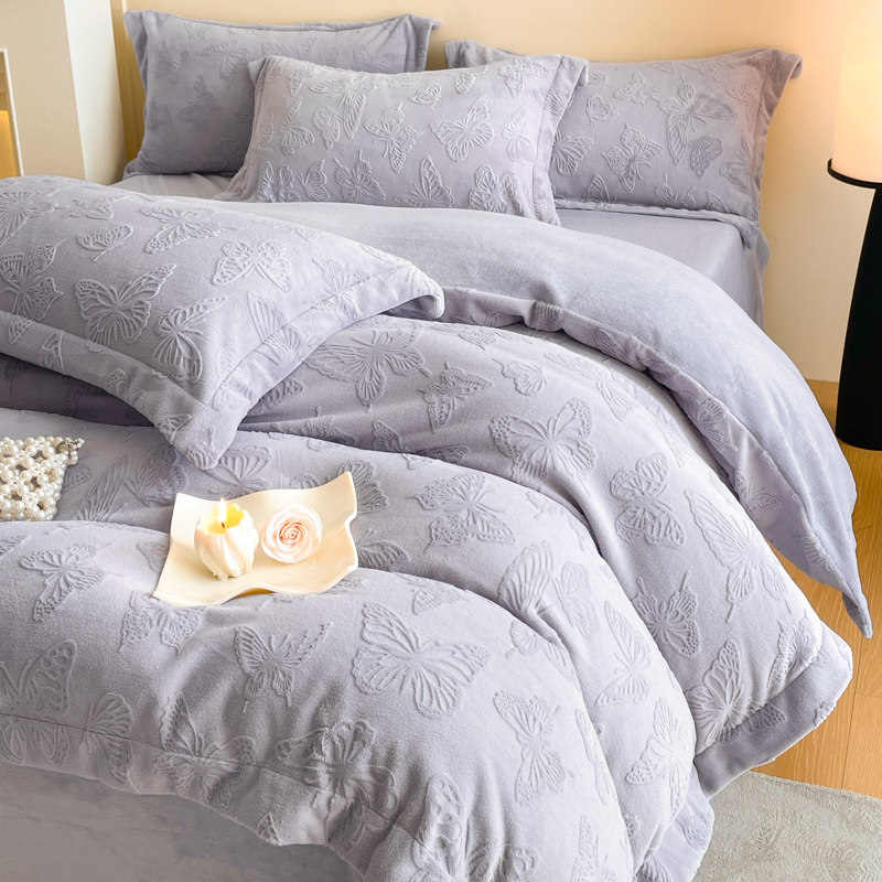 A类牛奶绒立体雕花烂花宽边四件套冬天加厚绒床上用品床单被套4件