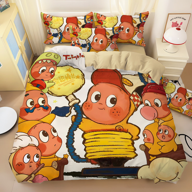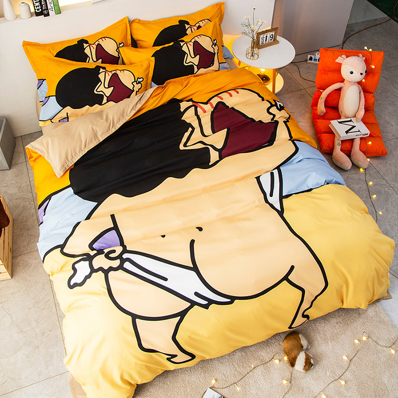 小红书卡通小人壁纸纯棉四件套动漫儿童学生床上用品床单床笠被套