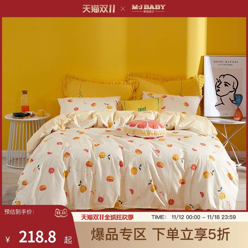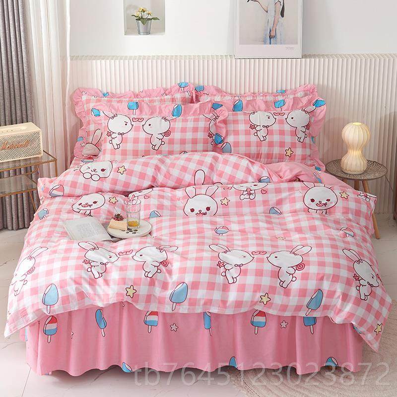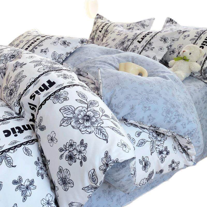 ins裸睡纯棉四件套A类小清新全棉床单被套床笠款床上用品宿舍三件