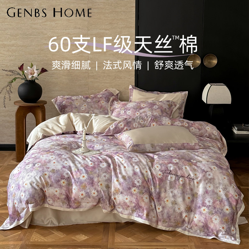 晋帛家纺春夏天丝丝滑柔软四件套田园天丝棉床上用品床单1.8米