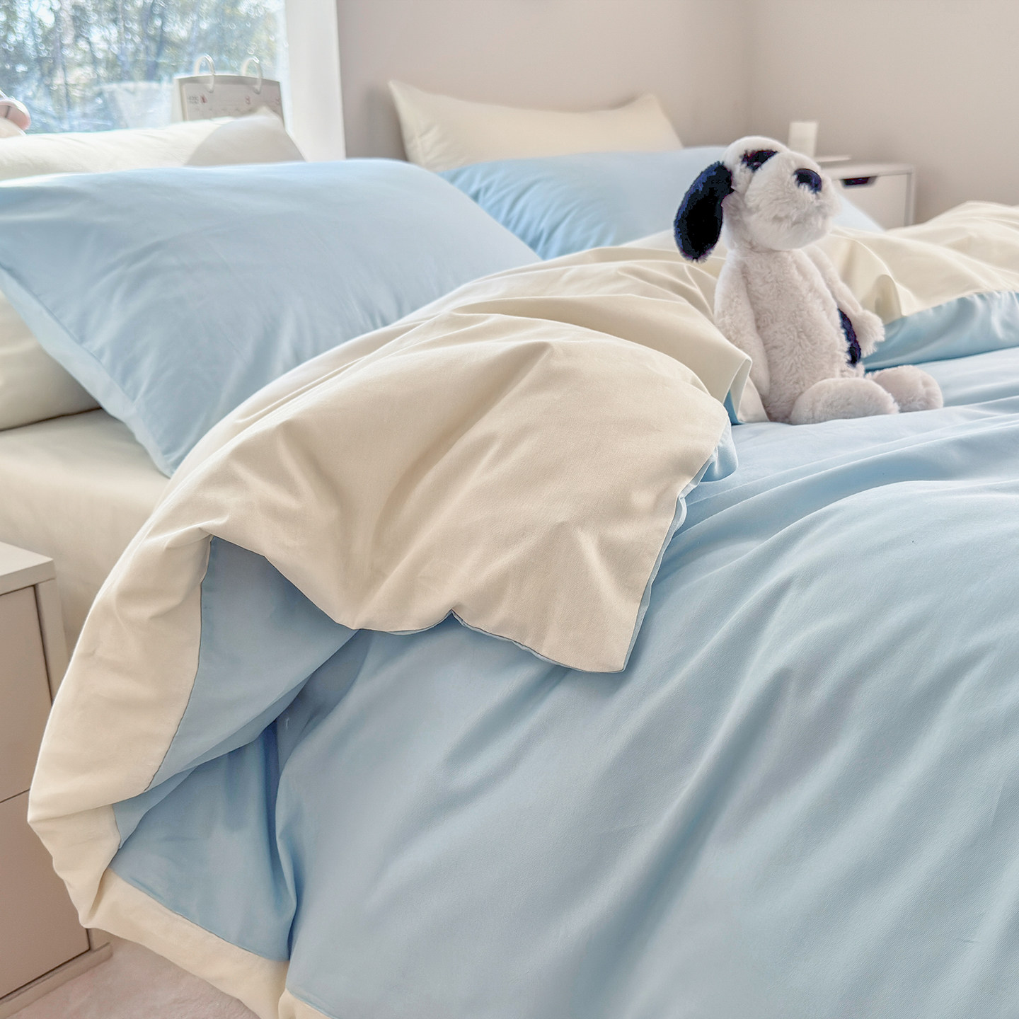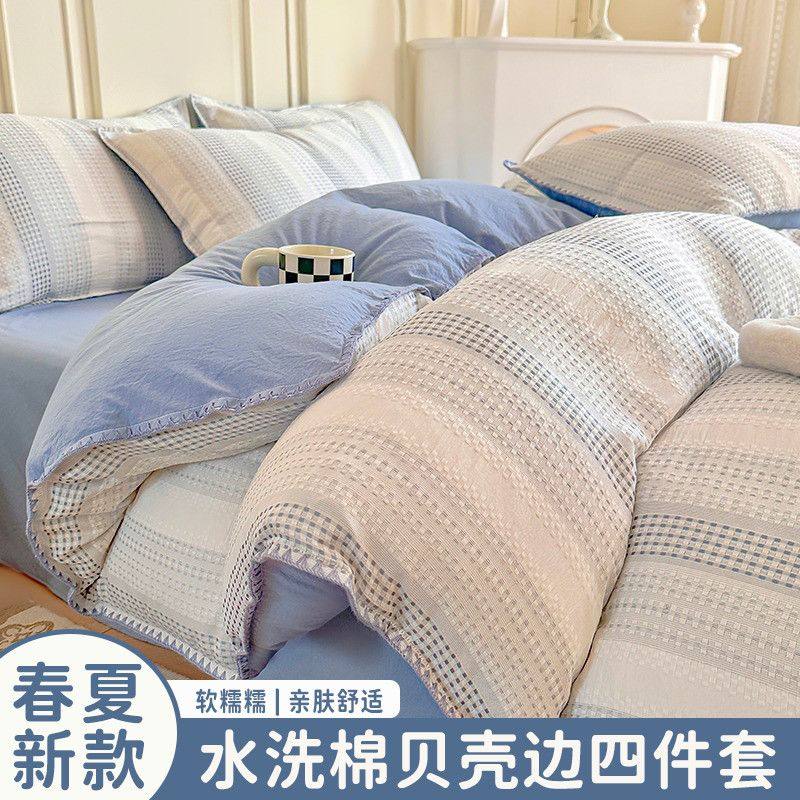水洗棉贝壳边皖沙四件套多巴胺单被套床上用品床单床笠款软糯舒适