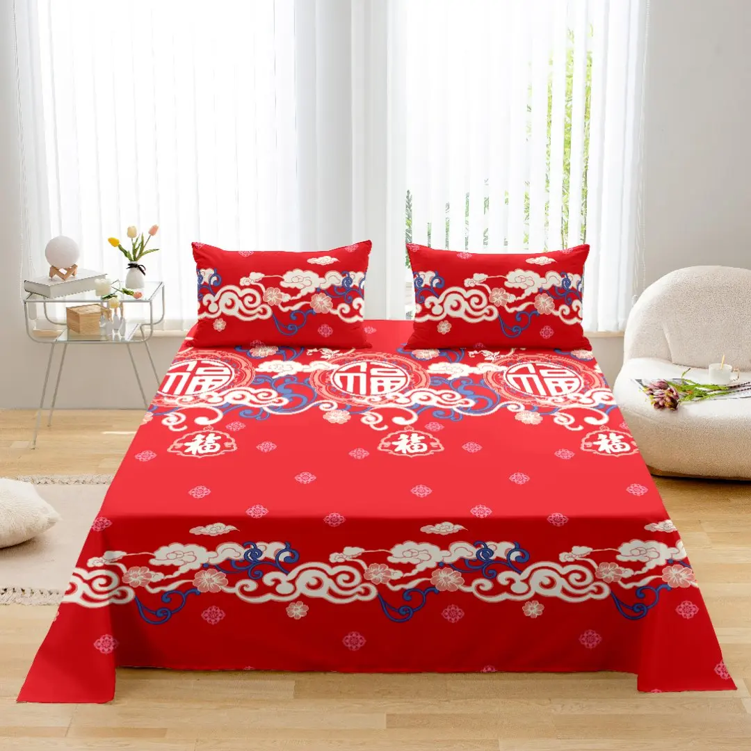简约婚庆四件套大红全棉中式喜庆爱心新结婚房嫁礼床上用品床单笠