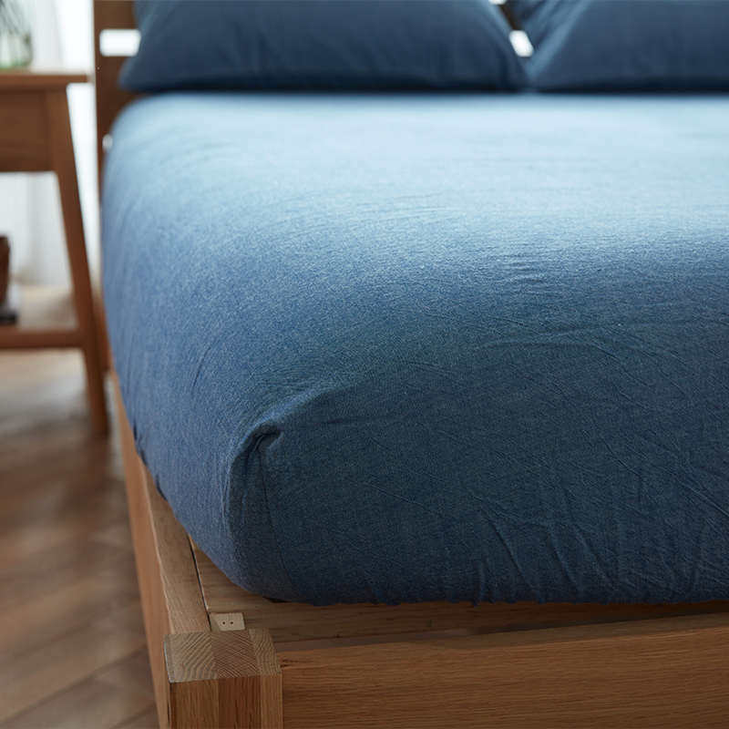 工厂价/水洗棉条纹纯色纯棉简约裸睡床笠全棉床上用品床单床垫罩