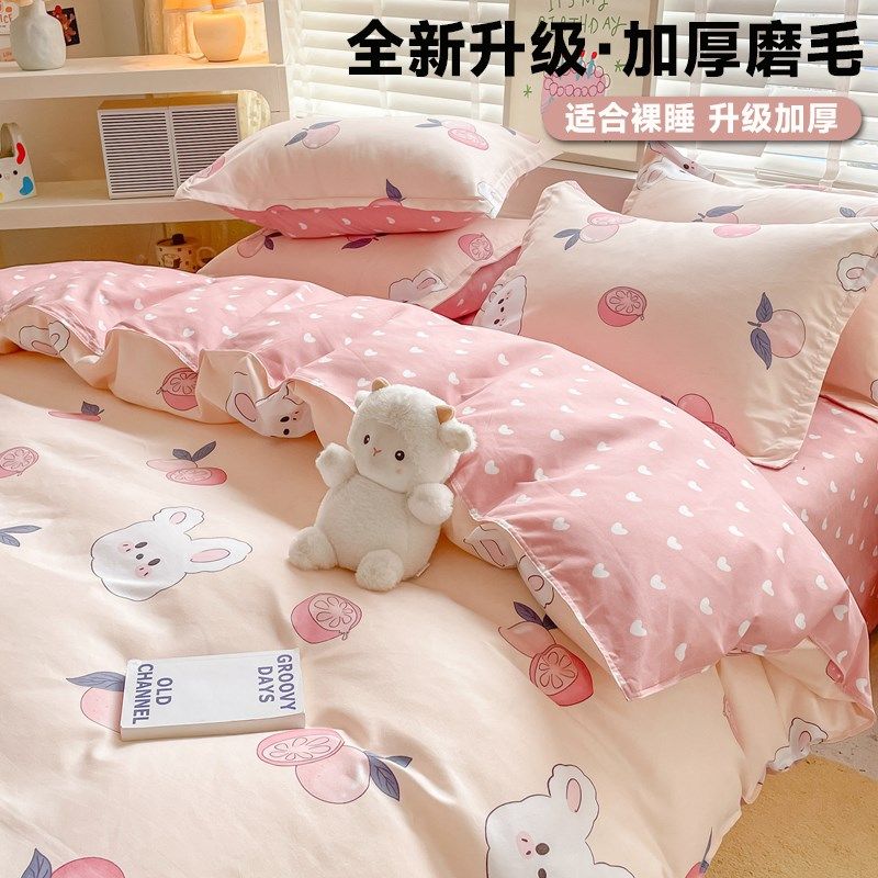 床单四件套被套夏季单人学生宿舍三件套磨毛单件被罩卡通床上用品