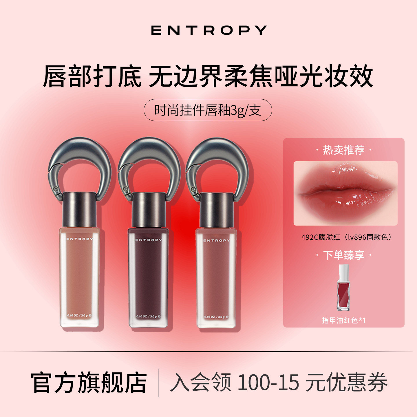 韩国ENTROPY钥匙扣挂坠唇釉女口红哑光雾面系列保湿显色唇彩滋润