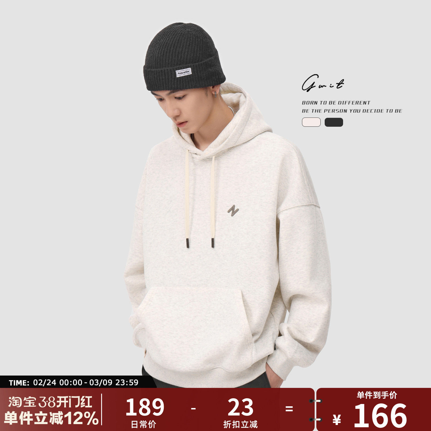 GWIT 基础款潮牌刺绣冬季保暖套头打底衫帽衫加绒加厚连帽卫衣男