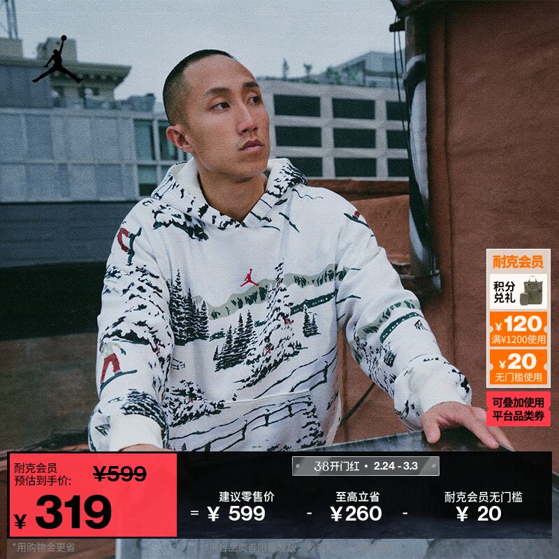耐克乔丹男子超宽松套头连帽衫冬新款加绒图案卫衣JORDAN HV0545