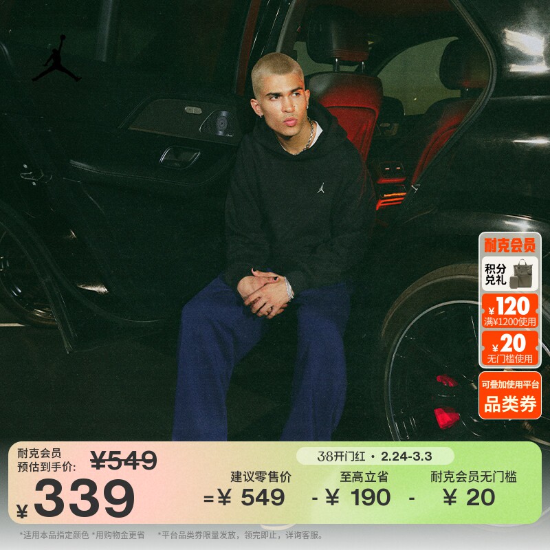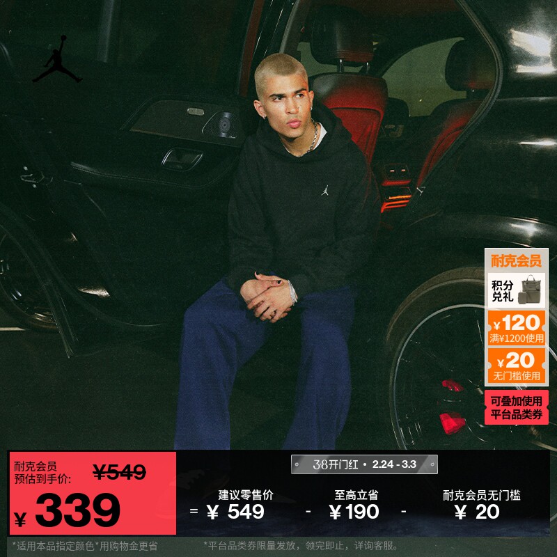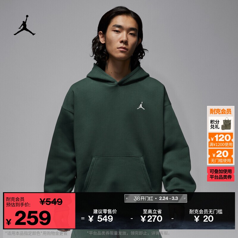 耐克乔丹男子超宽松套头连帽衫冬季新款加绒卫衣JORDAN IB7236