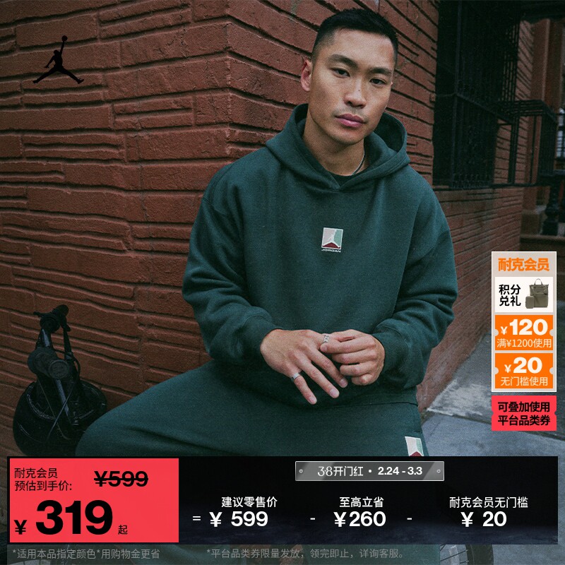 耐克乔丹圣诞系列男子加绒套头连帽衫冬季新款卫衣JORDAN HV1051
