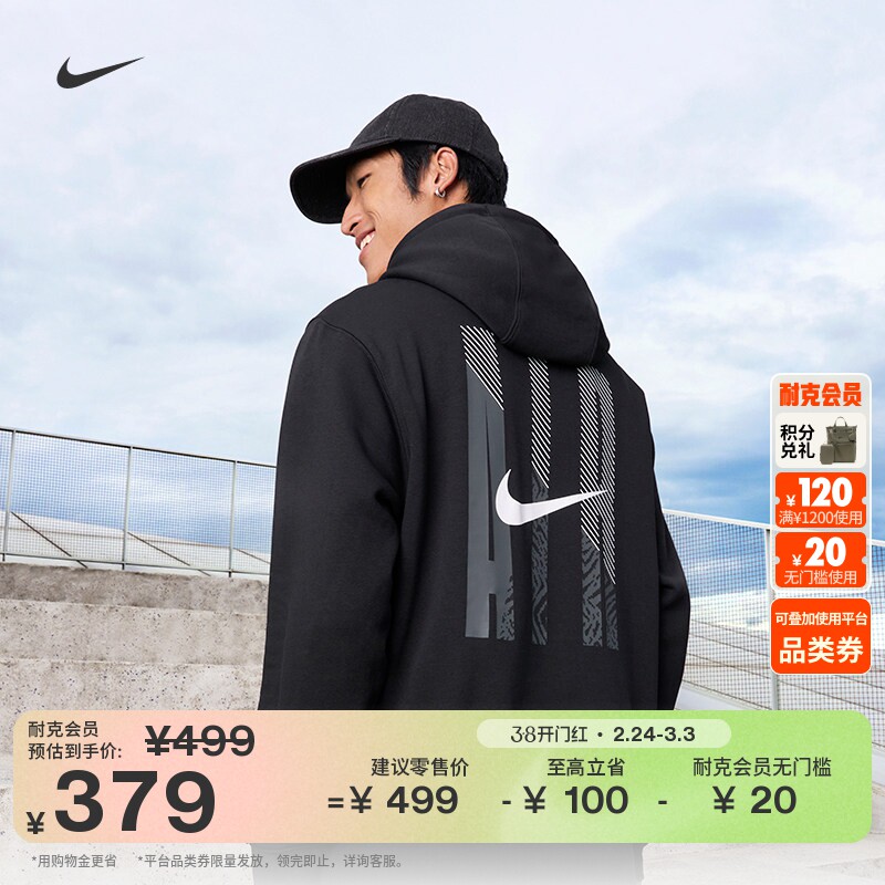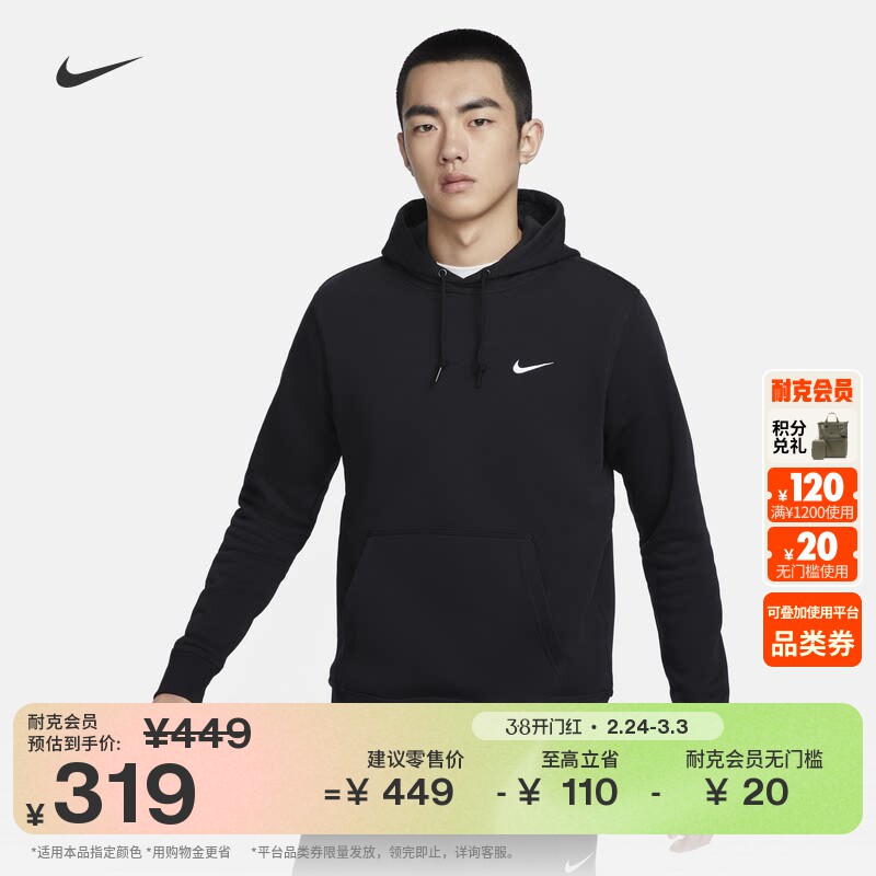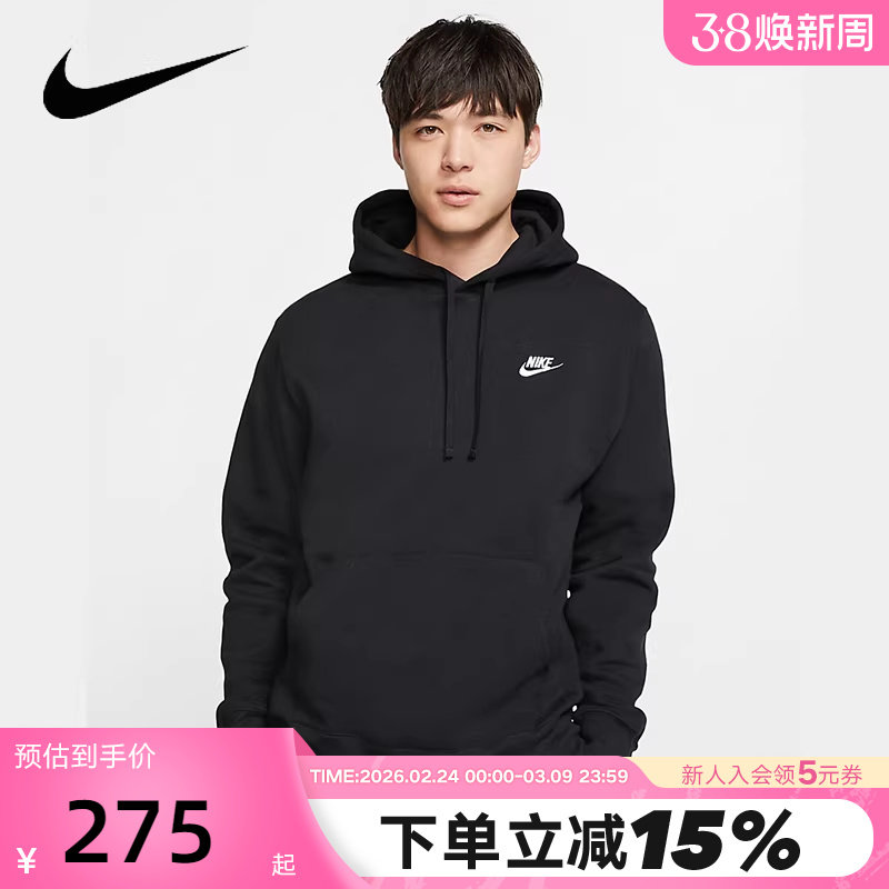 耐克男子加绒套头连帽衫冬季新款针织休闲柔软卫衣NIKE FN3869