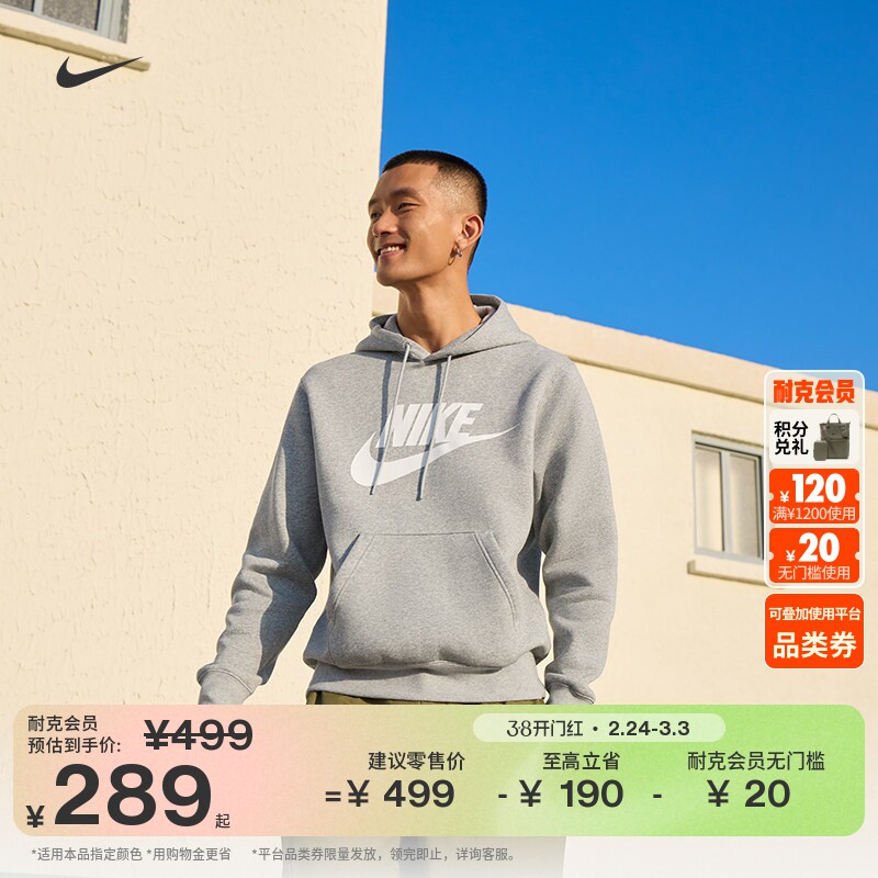 耐克男子加绒套头连帽衫冬季新款针织休闲柔软卫衣NIKE IM9485