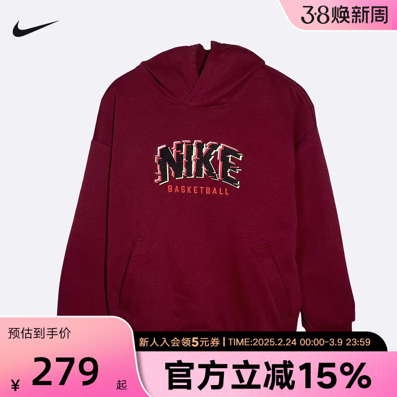 耐克男子加绒套头连帽衫冬季新款针织休闲刺绣卫衣NIKE FN3860