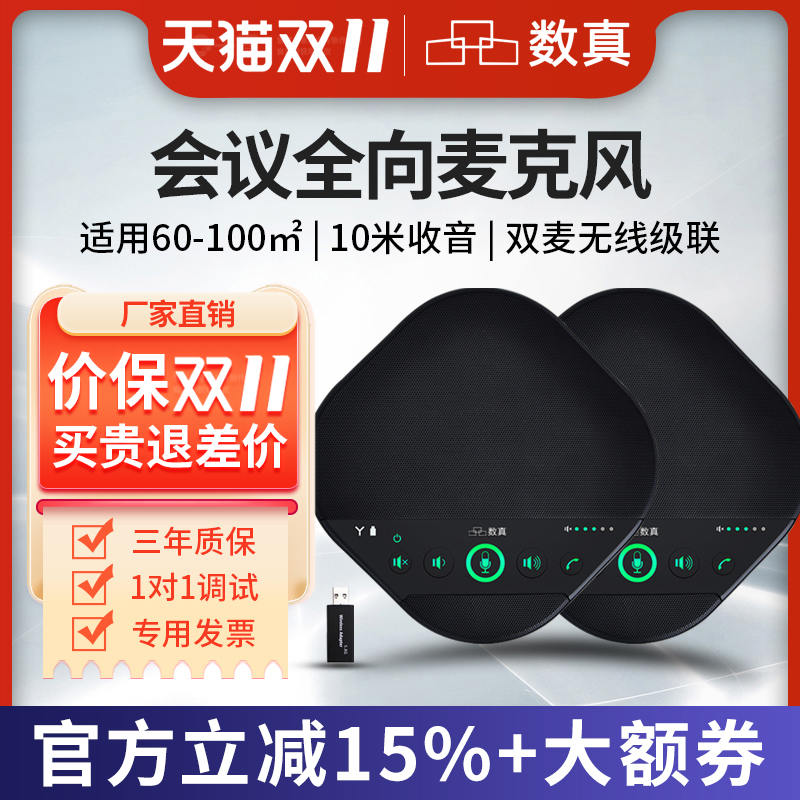 数真视频会议全向麦克风PE40L 一拖二 支持5.8G无线级联 适用腾讯会议/钉钉/ZOOM/Welink云视频会议软件