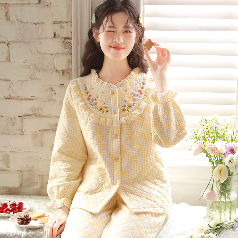 富朵秋冬空气棉月子服产后夹棉保暖哺乳衣睡衣孕妇春秋待产家居服