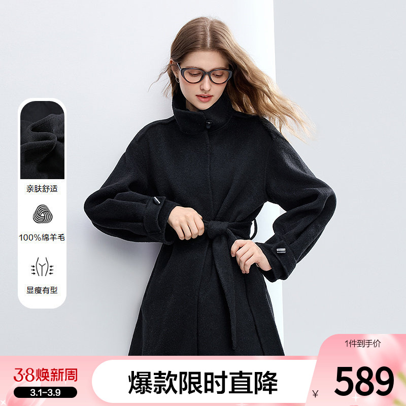 2026新款M家101801双面羊绒羊毛大衣女气质高端黑色呢子外套