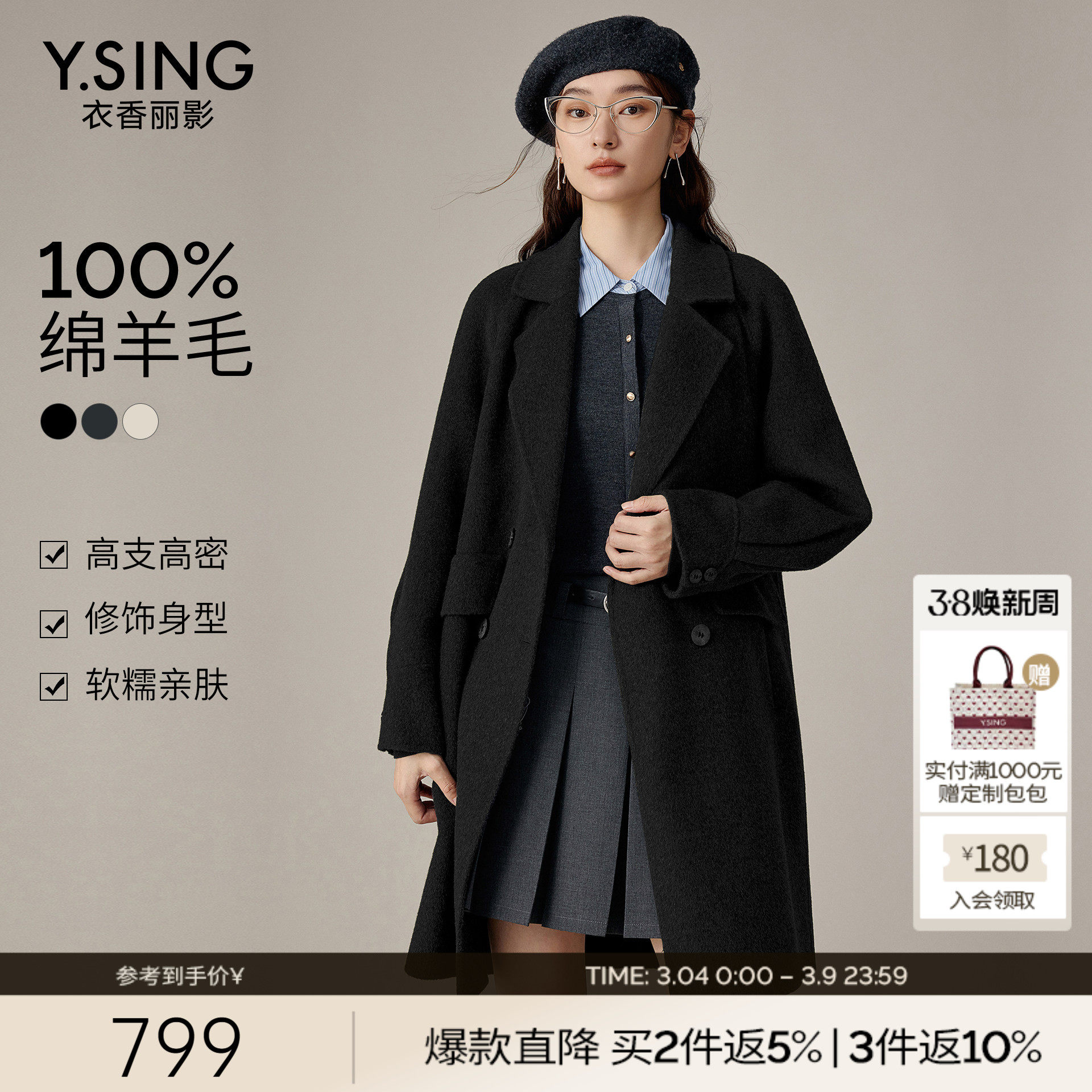 popchrio◆【理想大衣】80支羊毛双面毛呢大衣新年红黑色呢子外套