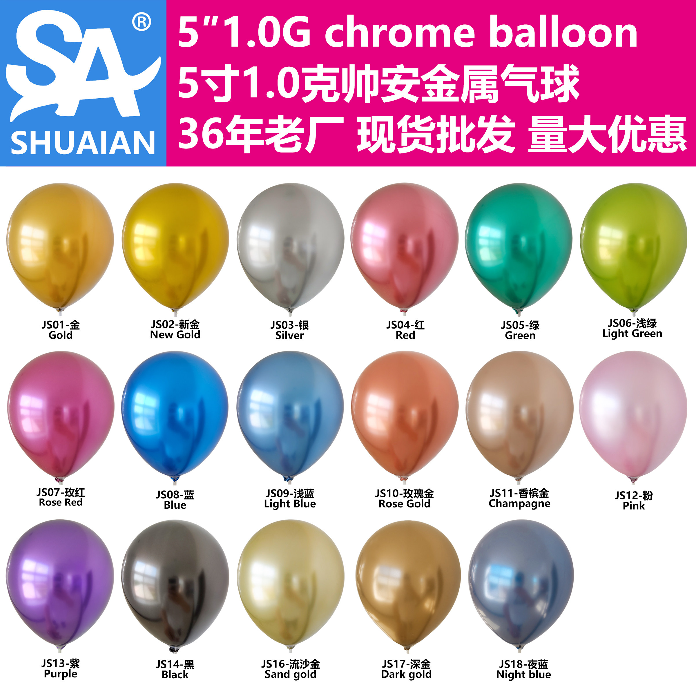 帅安5寸金属铬色气球 加厚乳胶气球生日节日派对结婚婚房装饰气球