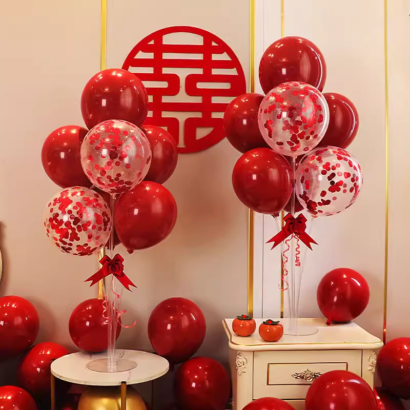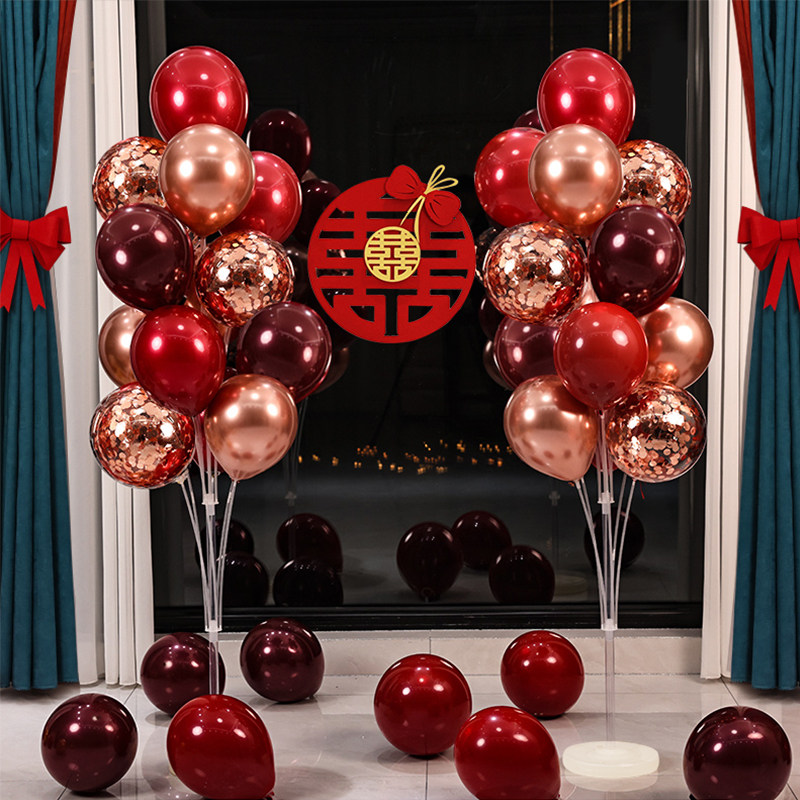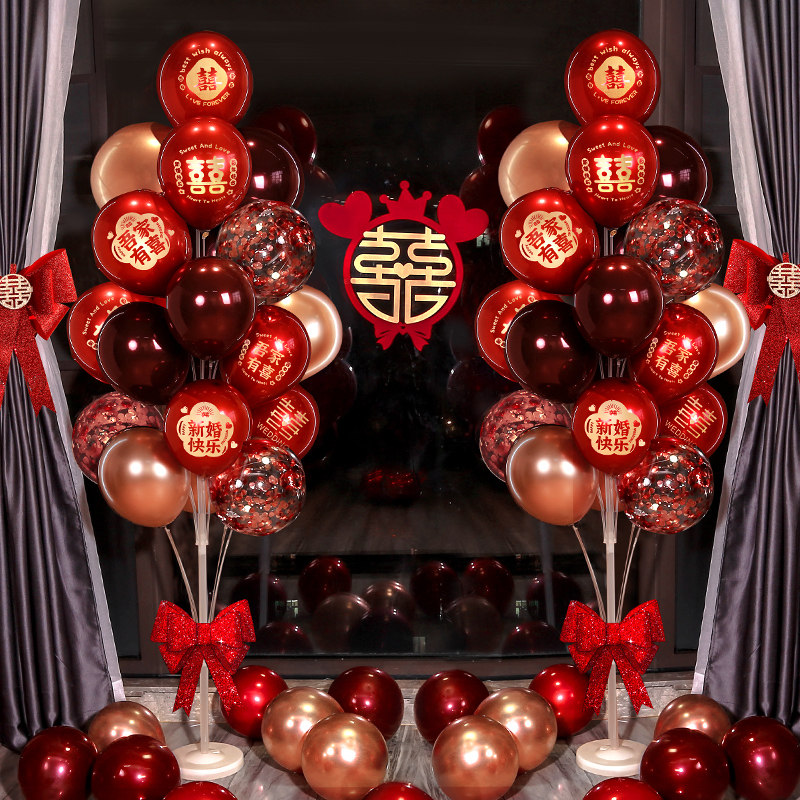 结订婚房装饰气球双层香奈红石榴红喜庆男女方房间装扮地桌飘支架