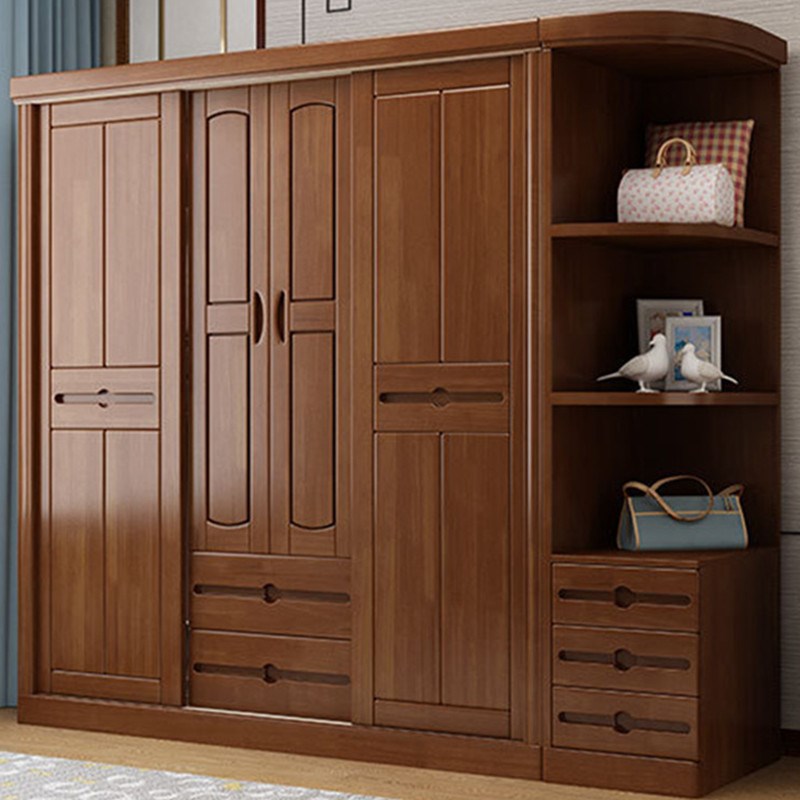 中式推拉门实木衣柜现代简约卧室移门经济型边柜加顶柜4门大衣橱